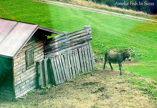 奔馳在青山綠野中的冰河列車,路邊的小驢兒,真可愛。(車拍)