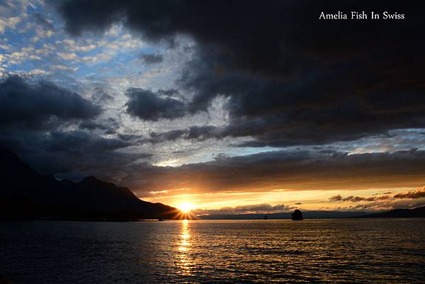 Montreux的黃昏,於瑞士法語區的蕾夢湖邊,用完晚餐,就在湖邊看日落。